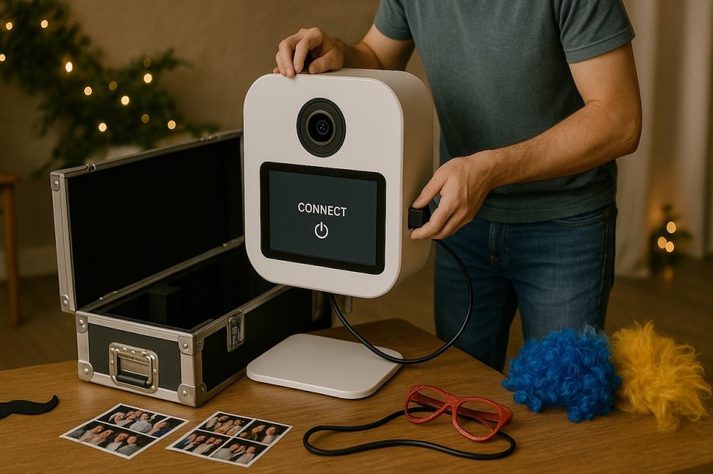 Le photobooth KRUU s’installe en quelques minutes. Livré dans une caisse avec écran tactile, appareil photo reflex et imprimante (selon le forfait), le montage simplifié par des instructions visuelles. Cliquez ici pour commander KRUU. L’interface tactile intuitive permet une utilisation autonome, idéale pour événements où les invités gèrent les prises de vue sans expertise technique.